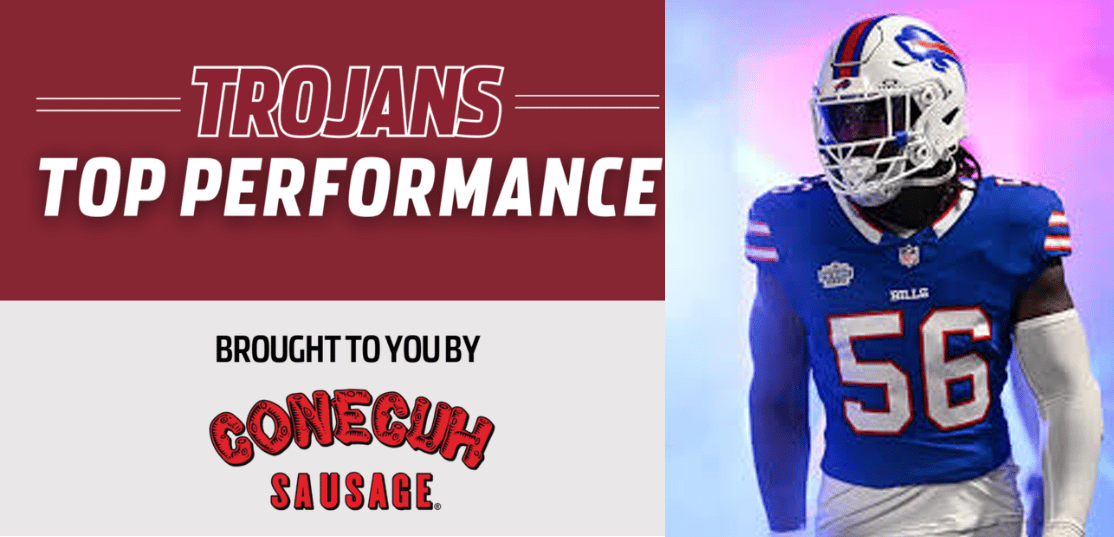 Today’s Trojan Top Performance, brought to you by Conecuh Sausage, is, former Troy standout Javon Solomon, who picked up his sixth multi-tackle performance in Sunday’s win for the Buffalo Bills. In his second NFL season, Solomon, racked up a career-high 17 tackles playing in all 17 games with Buffalo.