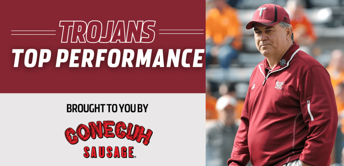 Trojans Top Performance is brought to you by Conecuh Sausage. Conecuh Sausage is made in Alabama, it’s great on the grill and a fan favorite for tailgating. Conecuh Sausage, the Official Sausage of Troy Athletics.