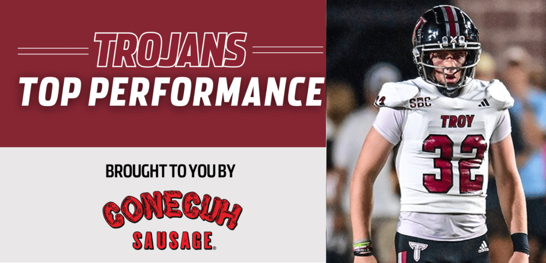Trojans Top Performance is brought to you by Conecuh Sausage. Conecuh Sausage is made in Alabama, it’s great on the grill and a fan favorite for tailgating. Conecuh Sausage, the Official Sausage of Troy Athletics.