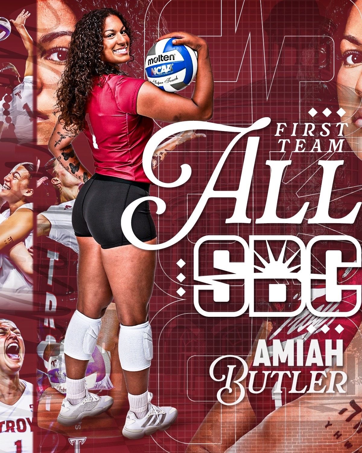 🔼 The Butler Did It. Following one of the most impressive regular seasons in Troy volleyball history, Amiah Butler earned a spot on the All-Sun Belt First Team.