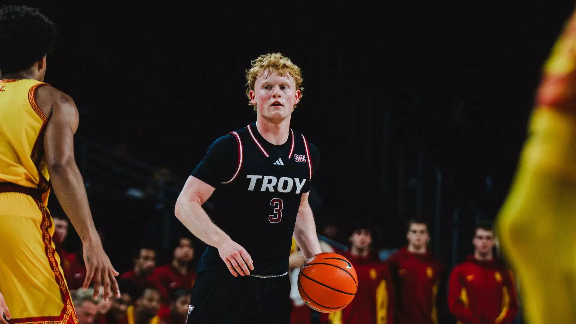 Cooper Campbell led the way for Troy, setting a career high in points (32) and assists (12). The stat line gave Campbell his first career double-double. Victor Valdes added 24 points for the Cardinal and White.