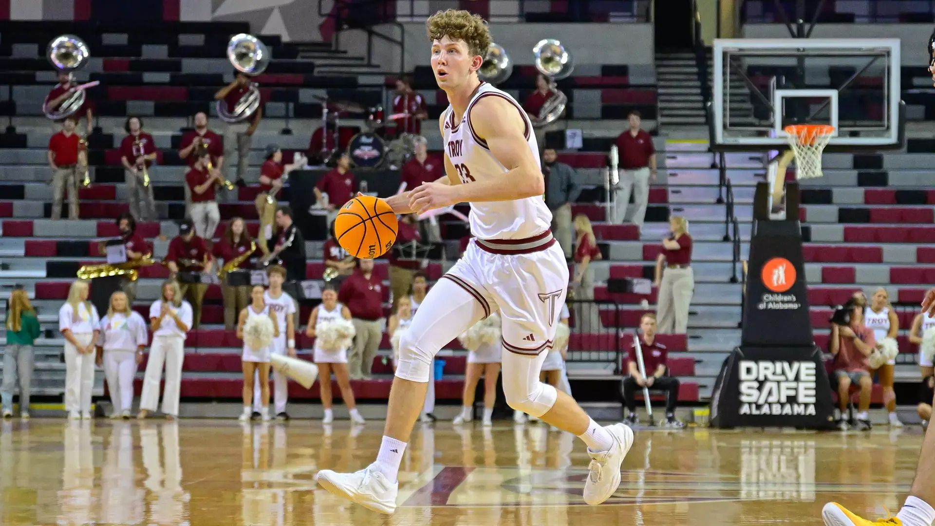 Five Trojans scored in double figures as the 2025-26 Troy men's basketball team opened its campaign with a thrilling overtime win on the road, defeating Kent State on Monday night, 103-97.